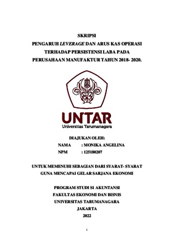 ANGELINA, MONIKA (2021) PENGARUH LEVERAGE DAN ARUS KAS OPERASI TERHADAP PERSISTENSI LABA PADA PERUSAHAAN MANUFAKTUR TAHUN 2018-2020. Skripsi thesis, Universitas Tarumanagara.