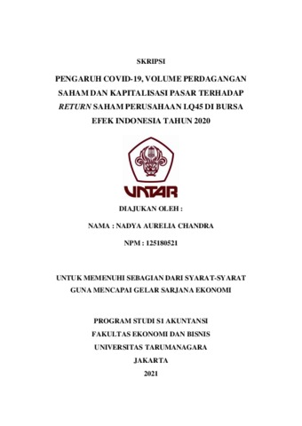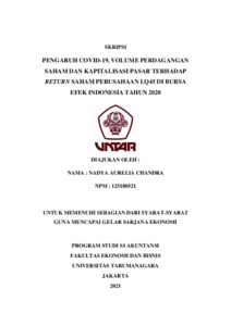 CHANDRA, NADYA AURELIA (2021) PENGARUH COVID-19, VOLUME PERDAGANGAN SAHAM DAN KAPITALISASI PASAR TERHADAP RETURN SAHAM PERUSAHAAN LQ45 DI BURSA EFEK INDONESIA TAHUN 2020. Skripsi thesis, Universitas Tarumanagara.