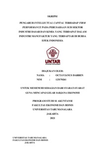 DARREN, OCTAVIANUS (2021) PENGARUH INTELLECTUAL CAPITAL TERHADAP FIRM PERFORMANCE PADA PERUSAHAAN SUB SEKTOR INDUSTRI DASAR DAN KIMIA YANG TERDAPAT DALAM INDUSTRI MANUFAKTUR YANG TERDAFTAR DI BURSA EFEK INDONESIA. Skripsi thesis, Universitas Tarumanagara.
