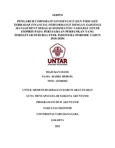 Kata Kunci: Tata kelola perusahaan, kepemilikan institusional, ukuran perusahaan, kepemilikan manajerial, kinerja keuangan, manajemen laba, bank, profitabilitas, return on assets, struktur kepemilikan