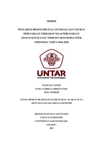 CHRISTAVERA, SABRINA (2021) PENGARUH PROFITABILITAS, LEVERAGE, DAN UKURAN PERUSAHAAN TERDAHAP NILAI PERUSAHAAN MANUFAKTUR YANG TERDAFTAR DI BURSA EFEK INDONESIA TAHUN 2016-2020. Skripsi thesis, Universitas Tarumanagara.
