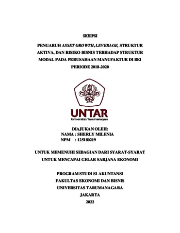 MILENIA, SHERLY (2021) PENGARUH ASSET GROWTH, LEVERAGE, STRUKTUR AKTIVA DAN RISIKO BISNIS TERHADAP STRUKTUR MODAL PADA PERUSAHAAN MANUFAKTUR YANG TERDAFTAR DI BEI PERIODE 2018-2020. Skripsi thesis, Universitas Tarumanagara.