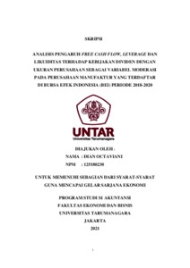 OKTAVIA, SHERLY (2021) PENGARUH PENGARUH LEVERAGE, STRUKTUR AKTIVA, FIRM SIZE, DAN LIKUIDITAS TERHADAP KINERJA KEUANGAN PADA PERUSAHAAN MANUFAKTUR YANG TERDAFTAR DI BEI PADA TAHUN 2018 - 2020. Skripsi thesis, Universitas Tarumanagara.