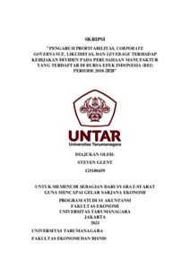 GLENT, STEVEN (2021) PENGARUH PROFITABILITAS, CORPORATE GOVERNANCE, LIKUIDITAS, DAN LEVERAGE TERHADAP KEBIJAKAN DIVIDEN PADA PERUSAHAAN MANUFAKTUR YANG TERDAFTAR DI BURSA EFEK INDONESIA (BEI) PERIODE 2018-2020. Skripsi thesis, Universitas Tarumanagara.