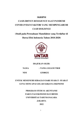 TROI, TANIA LILIANI (2021) CASH-DRIVEN RESILIENCE SAAT PANDEMI COVID-19 DAN FAKTOR YANG MEMPENGARUHI CASH HOLDINGS. Skripsi thesis, Universitas Tarumanagara.