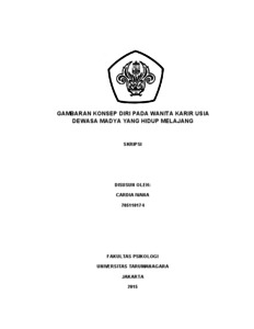 Ivana, Cardia (2022) Gambaran Konsep Diri pada Wanita Karir Usia Dewasa Madya yang Hidup Melajang; Linda Wati. Skripsi thesis, Universitas Tarumanagara.