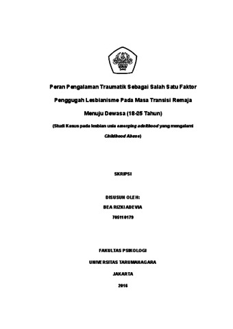 | Uncontrolled Keywords: | Pengalaman Traumatis, Lesbianisme, Emerging Adulthood |