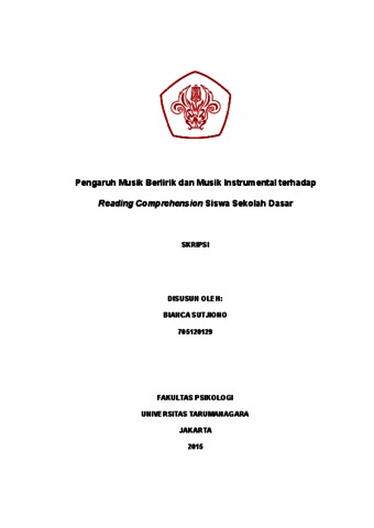Sutjiono, Bianca (2022) Pengaruh Musik Berlirik dan Musik Instrumental Terhadap Reading Comprehension. Skripsi thesis, Universitas Tarumanagara.