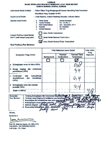 Linda santioso, Review (2019) Review Faktor-faktor yang mempengaruhi income smooting pada perusahaan manufaktur yang terdaftar di BEI. Faktor-faktor yang mempengaruhi income smooting pada perusahaan manufaktur yang terdaftar di BEI, 2 (19). pp. 105-122.