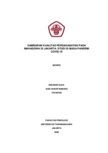 Namara, Audi Akbar (2022) Gambaran Kualitas Persahabatan pada Mahasiswa di Jakarta: Studi di Masa Pandemi Covid-19. Skripsi thesis, Universitas Tarumanagara.