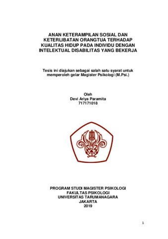 Paramita, Devi Ariya (2022) Peranan Keterampilan Sosial Dan Keterlibatan Orangtua Terhadap Kualitas Hidup Individu Intelektual Disabilitas Yang Bekerja. Masters thesis, Universitas Tarumanagara.