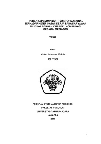 Wailulu, Kintan Nurcahya (2022) Peran Kepemimpinan Transformasional Terhadap Keterikatan Kerja Pada Karyawan Milenial dengan Komunikasi sebagai Variabel Mediator. Masters thesis, Universitas Tarumanagara.