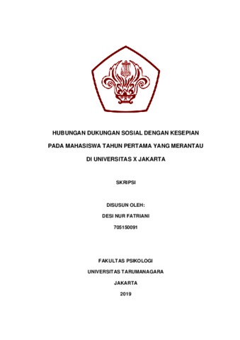 Fatriani, Desi Nur (2022) Hubungan Dukungan Sosial dengan Kesepian pada Mahasiswa Tahun Pertama yang Merantau di Universitas X Jakarta. Skripsi thesis, Universitas Tarumanagara.