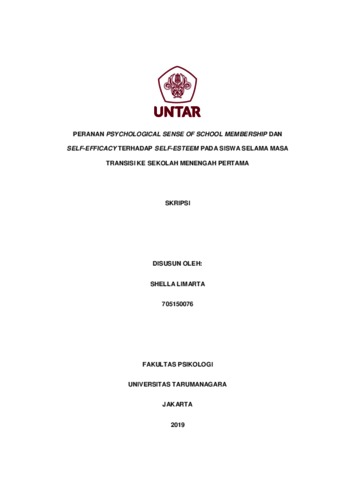 Limarta, Shella (2022) Peranan Psychological Sense of School Membership dan Self-Efficacy terhadap Self-Esteem Pada Siswa Selama Masa Transisi ke Sekolah Menengah Pertama. Skripsi thesis, Universitas Tarumanagara.