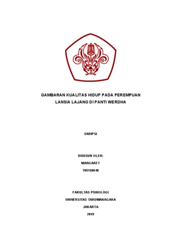 Margaret, Margaret (2022) Gambaran Kualitas Hidup pada Perempuan Lansia Lajang di Panti Werdha. Skripsi thesis, Universitas Tarumanagara.