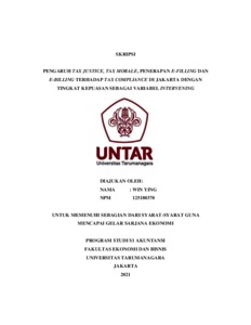 WIN YING, WIN YING (2021) PENGARUH TAX JUSTICE, TAX MORALE, PENERAPAN E-FILLING DAN E-BILLING TERHADAP TAX COMPLIANCE DI JAKARTA DENGAN TINGKAT KEPUASAN SEBAGAI VARIABEL INTERVENING. Skripsi thesis, Universitas Tarumanagara.