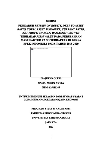 YUVIA, WINDY (2021) PENGARUH RETURN ON EQUITY, DEBT TO ASSET RATIO, TOTAL ASSET TURNOVER, CURRENT RATIO, NET PROFIT MARGIN, DAN ASSET GROWTH TERHADAP FIRM VALUE PADA PERUSAHAAN MANUFAKTUR YANG TERDAFTAR DI BURSA EFEK INDONESIA PADA TAHUN 2018-2020. Skripsi thesis, Universitas Tarumanagara.