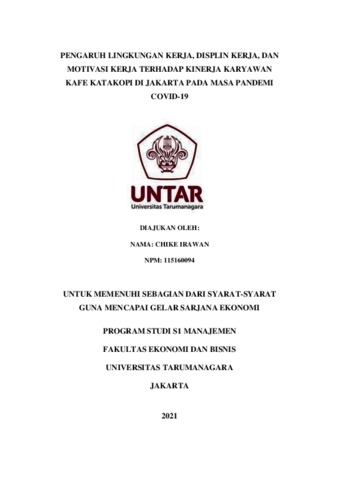 IRAWAN, CHIKE (2021) PENGARUH LINGKUNGAN KERJA, DISPLIN KERJA, DAN MOTIVASI KERJA TERHADAP KINERJA KARYAWAN KAFE KATAKOPI DI JAKARTA PADA MASA PANDEMI COVID-19. Skripsi thesis, Universitas Tarumanagara.