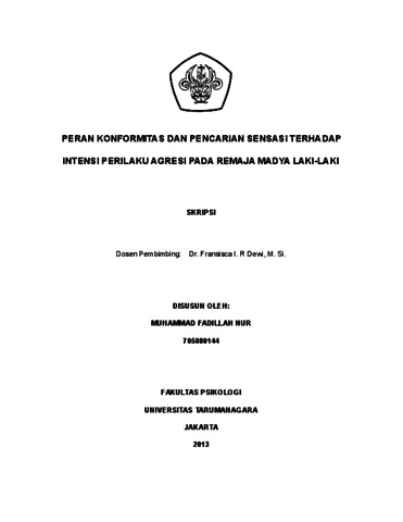Nur, Muhammad Fadillah (2022) Peran antara Konfrormitas dan Mencari Sensasi (Sensation Seeking) Terhadap Intensi Perilaku Agresi Pada Remaja Madya Laki-laki. Skripsi thesis, Universitas Tarumanagara.