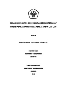 | Uncontrolled Keywords: | Konformitas, Mencari Sensasi, Intensi Perilaku Agresif, Remaja Madya, laki-laki |