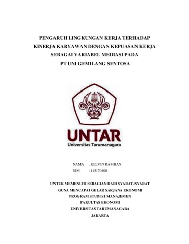 RAMBAN, KELVIN (2021) PENGARUH LINGKUNGAN KERJA TERHADAP KINERJA KARYAWAN DENGAN KEPUASAN KERJA SEBAGAI VARIABEL MEDIASI PADA PT UNI GEMILANG SENTOSA. Skripsi thesis, Universitas Tarumanagara.
