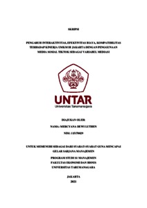 LUTHEN, MERCYANA DEWI (2021) PENGARUH INTERAKTIVITAS, EFEKTIVITAS BIAYA, KOMPATIBILITAS TERHADAP KINERJA UMKM DI JAKARTA DENGAN PENGGUNAAN MEDIA SOSIAL TIKTOK SEBAGAI VARIABEL MEDIASI. Skripsi thesis, Universitas Tarumanagara.