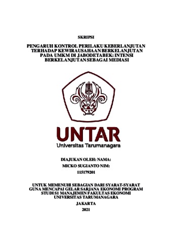 SUGIANTO, MICKO (2021) PENGARUH KONTROL PERILAKU KEBERLANJUTAN TERHADAP KEWIRAUSAHAAN BERKELANJUTAN PADA UMKM DI JABODETABEK: INTENSI BERKELANJUTAN SEBAGAI MEDIASI. Skripsi thesis, Universitas Tarumanagara.