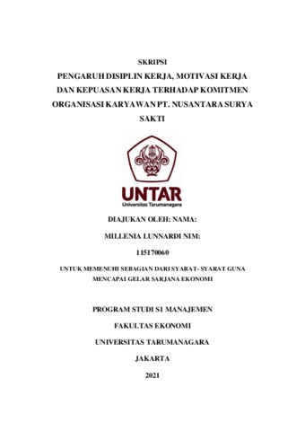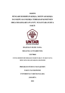 LUNNARDI, MILLENIA (2021) PENGARUH DISIPLIN KERJA, MOTIVASI KERJA DAN KEPUASAN KERJA TERHADAP KOMITMEN ORGANISASI KARYAWAN PT. NUSANTARA SURYA SAKTI. Skripsi thesis, Universitas Tarumanagara.