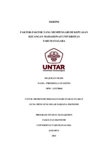 SULISTIO, PRESHELLA (2021) FAKTOR-FAKTOR YANG MEMPENGARUHI KEPUASAN KEUANGAN MAHASISWA/I UNIVERSITAS TARUMANAGARA. Skripsi thesis, Universitas Tarumanagara.