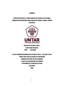 SUHAILI, RAFLIZAR (2021) PENGARUH BUDAYA ORGANISASI DAN KEPUASAN KERJA TERHADAP KOMITMEN ORGANISASI PT KIMIA FARMA TBK DI JAKARTA. Skripsi thesis, Universitas Tarumanagara.