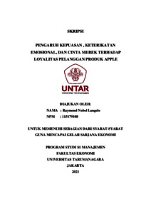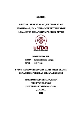 Langelo, Raymond Nobel (2021) PENGARUH KEPUASAN , KETERIKATAN EMOSIONAL, DAN CINTA MEREK TERHADAP LOYALITAS PELANGGAN PRODUK APPLE. Skripsi thesis, Universitas Tarumanagara.