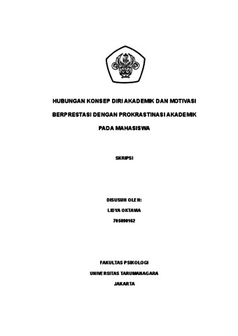 Oktavia, Lidya (2022) Hubungan antara Konsep Diri Akademik dan Motivasi Beprestasi dengan Prokrastinasi Akademik pada mahasiswa. Skripsi thesis, Universitas Tarumanagara.