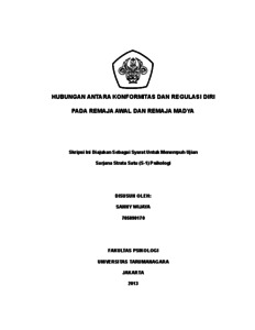 Wijaya, Sanny (2022) Hubungan Konformitas dan Regulasi Diri pada Remaja Awal dan Remaja Madya. Skripsi thesis, Universitas Tarumanagara.