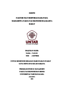 VAN-NI, VAN-NI (2021) FAKTOR NIAT BERWIRAUSAHA PADA MAHASISWA FAKULTAS EKONOMI DI JAKARTA BARAT. Skripsi thesis, Universitas Tarumanagara.