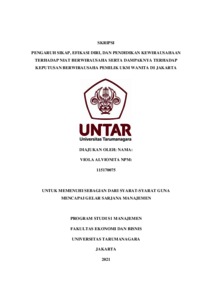 ALVIONITA, VIOLA (2021) PENGARUH SIKAP, EFIKASI DIRI, DAN PENDIDIKAN KEWIRAUSAHAAN TERHADAP NIAT BERWIRAUSAHA SERTA DAMPAKNYA TERHADAP KEPUTUSAN BERWIRAUSAHA PEMILIK UKM WANITA DI JAKARTA. Skripsi thesis, Universitas Tarumanagara.