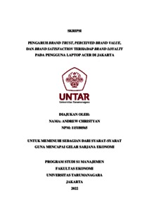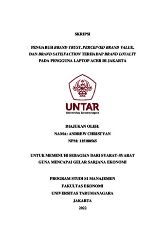 CHRISTYAN, ANDREW (2022) PENGARUH BRAND TRUST, PERCEIVED BRAND VALUE, DAN BRAND SATISFACTION TERHADAP BRAND LOYALTY PADA PENGGUNA LAPTOP ACER DI JAKARTA. Skripsi thesis, Universitas Tarumanagara.