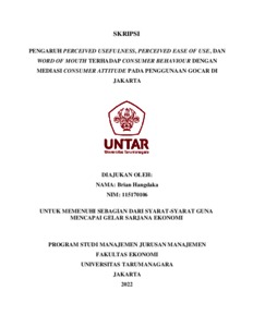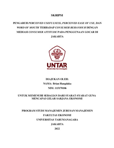 HANGDAKA, BRIAN (2022) PENGARUH PERCEIVED USEFULNESS, PERCEIVED EASE OF USE, DAN WORD OF MOUTH TERHADAP CONSUMER BEHAVIOUR DENGAN MEDIASI CONSUMER ATTITUDE PADA PENGGUNAAN GOCAR DI JAKARTA. Skripsi thesis, Universitas Tarumanagara.