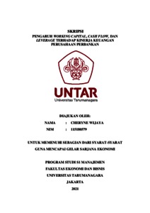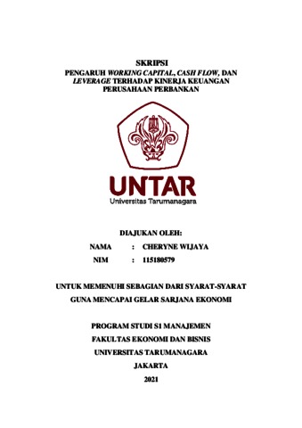 WIJAYA, CHERYNE (2022) PENGARUH WORKING CAPITAL, CASH FLOW, DAN LEVERAGE TERHADAP KINERJA KEUANGAN PERUSAHAAN PERBANKAN. Skripsi thesis, Universitas Tarumanagara.