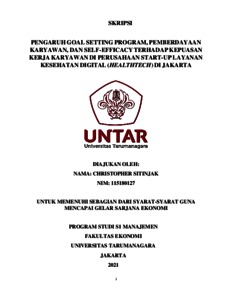 SITINJAK, CHRISTOPHER (2021) PENGARUH GOAL SETTING PROGRAM, PEMBERDAYAAN KARYAWAN, DAN SELF-EFFICACY TERHADAP KEPUASAN KERJA KARYAWAN DI PERUSAHAAN START-UP LAYANAN KESEHATAN DIGITAL (HEALTHTECH) DI JAKARTA. Skripsi thesis, Universitas Tarumanagara.