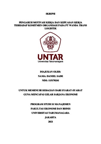 SADE, DANIEL (2022) PENGARUH MOTIVASI KERJA DAN KEPUASAN KERJA TERHADAP KOMITMEN ORGANISASI PADA PT WANDA TRANS LOGISTIK. Skripsi thesis, Universitas Tarumanagara.