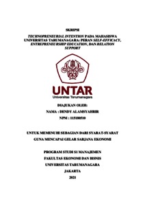 ALAMSYAHRIR, DENDY (2022) TECHNOPRENEURIAL INTENTION PADA MAHASISWA UNIVERSITAS TARUMANAGARA: PERAN SELF-EFFICACY, ENTREPRENEURSHIP EDUCATION, DAN RELATION SUPPORT. Skripsi thesis, Universitas Tarumanagara.