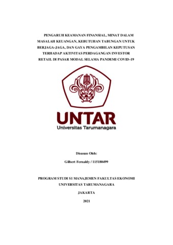 Kata kunci: Keamanan Finansial, Minat dalam Masalah Keuangan, Kebutuhan Tabungan untuk Berjaga-jaga, Gaya Pengambilan Keputusan, Aktivitas Perdagangan, Covid-19