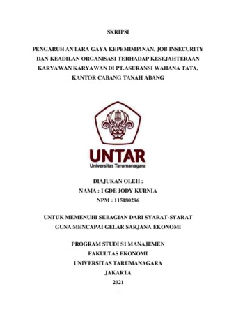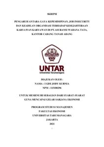 KURNIA, I GDE JODY (2022) PENGARUH ANTARA GAYA KEPEMIMPINAN, JOB INSECURITY DAN KEADILAN ORGANISASI TERHADAP KESEJAHTERAAN KARYAWAN KARYAWAN DI PT.ASURANSI WAHANA TATA, KANTOR CABANG TANAH ABANG. Skripsi thesis, Universitas Tarumanagara.