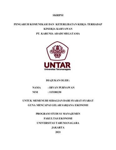 PURNAWAN, IRVAN (2021) PENGARUH KOMUNIKASI DAN KETERLIBATAN KERJA TERHADAP KINERJA KARYAWAN PT. X. Skripsi thesis, Universitas Tarumanagara.