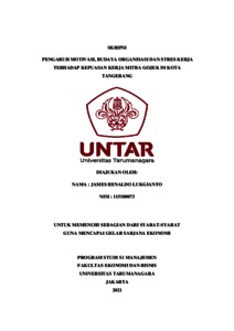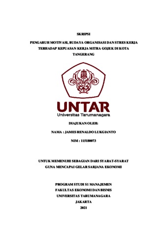 LUKGIANTO, JAMES RENALDO (2022) PENGARUH MOTIVASI, BUDAYA ORGANISASI DAN STRES KERJA TERHADAP KEPUASAN KERJA MITRA GOJEK DI KOTA TANGERANG. Skripsi thesis, Universitas Tarumanagara.