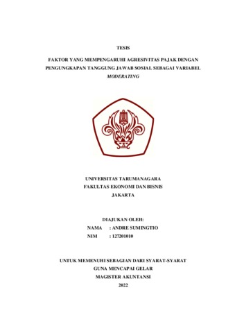 Sumingtio, Andre (2022) FAKTOR YANG MEMPENGARUHI AGRESIVITAS PAJAK DENGAN PENGUNGKAPAN TANGGUNG JAWAB SOSIAL SEBAGAI VARIABEL MODERATING. Masters thesis, UNIVERSITAS TARUMANAGARA.