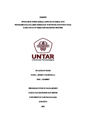 MARCELLA, JESSICA (2022) PENGARUH STRES KERJA, KEPUASAN KERJA DAN PENGEMBANGAN KARIR TERHADAP TURNOVER INTENTION PADA KARYAWAN PT SRIKANDI DIAMOND MOTORS. Skripsi thesis, Universitas Tarumanagara.