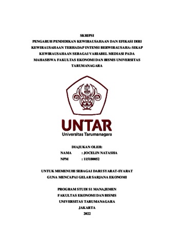 NATASHA, JOCELIN (2022) PENGARUH PENDIDIKAN KEWIRAUSAHAAN DAN EFIKASI DIRI KEWIRAUSAHAAN TERHADAP INTENSI BERWIRAUSAHA: SIKAP KEWIRAUSAHAAN SEBAGAI VARIABEL MEDIASI PADA MAHASISWA FAKULTAS EKONOMI DAN BISNIS UNIVERSITAS TARUMANAGARA. Skripsi thesis, Universitas Tarumanagara.