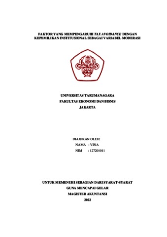 Vina, Vina (2022) Faktor Yang Mempengaruhi Tax Avoidance Dengan Kepemilikan Institusional Sebagai Variabel Moderasi. Masters thesis, UNIVERSITAS TARUMANAGARA.