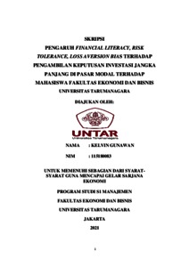 GUNAWAN, KELVIN (2022) PENGARUH FINANCIAL LITERACY, RISK TOLERANCE, LOSS AVERSION BIAS TERHADAP PENGAMBILAN KEPUTUSAN INVESTASI JANGKA PANJANG DI PASAR MODAL TERHADAP MAHASISWA FAKULTAS EKONOMI DAN BISNIS UNIVERSITAS TARUMANAGARA. Skripsi thesis, Universitas Tarumanagara.